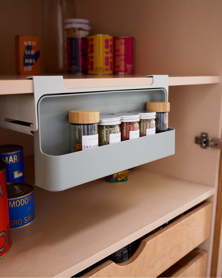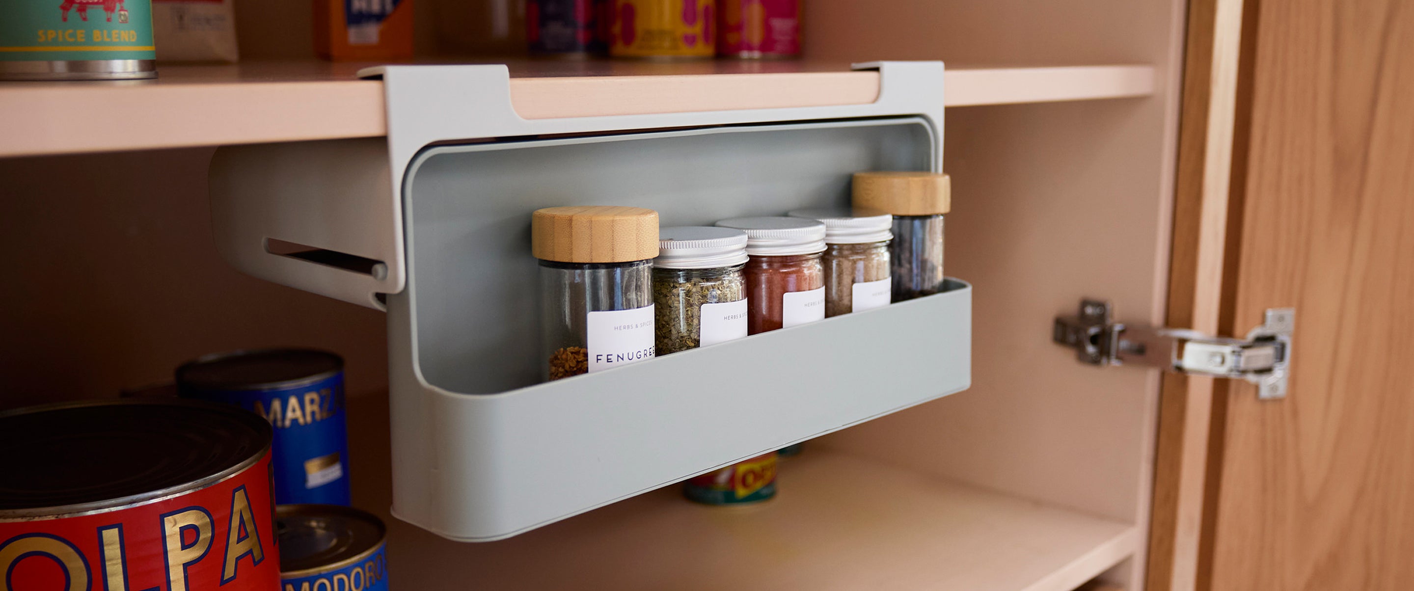 Conseil : utilisez des outils astucieux comme le porte-épices sous-étagère CupboardStore™ pour libérer de l'espace sur le plan de travail et utiliser les espaces inutilisés.