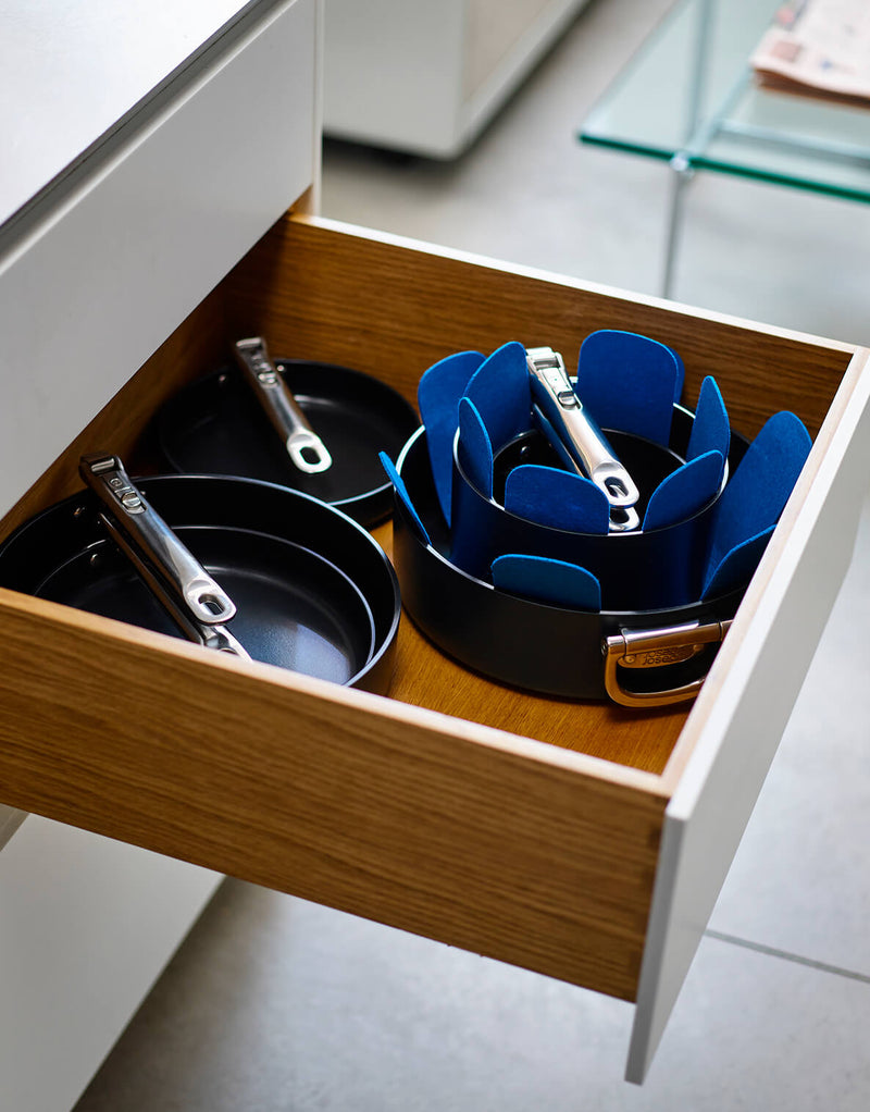 - Prévenez les rayures et les bosses sur votre matériel de cuisine avec ces protections en feutre pour les poêles.