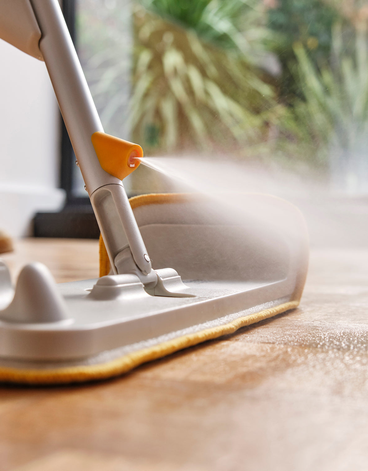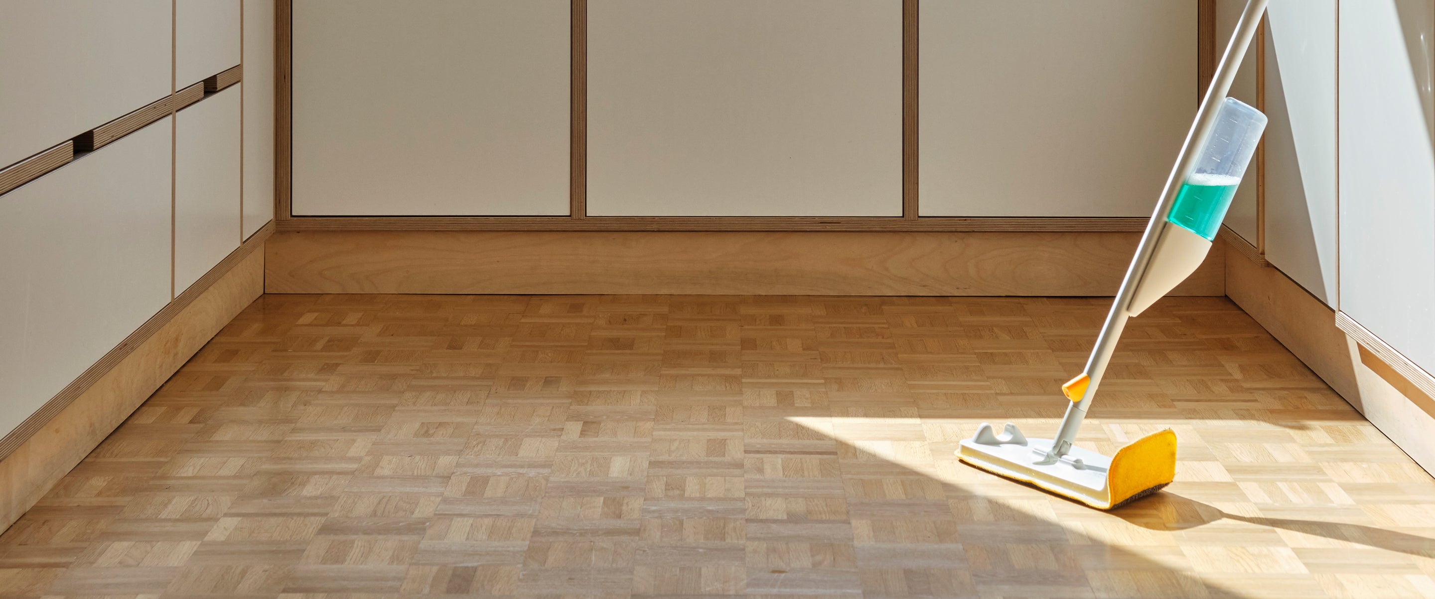 Gardez à l'esprit que le bois et l'eau ne font pas forcément bon ménage, il est donc important de savoir comment laver les parquets sans les abîmer. Pour un nettoyage régulier, un passage légèrement humide avec le balais pulvérisateur CleanTech™ fait des merveilles sans tremper le bois. Évitez les balais à franges classiques qui ont tendance à retenir trop d'eau et peuvent imbiber le sol.