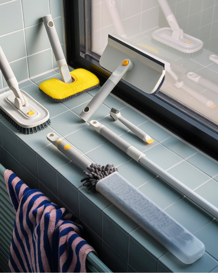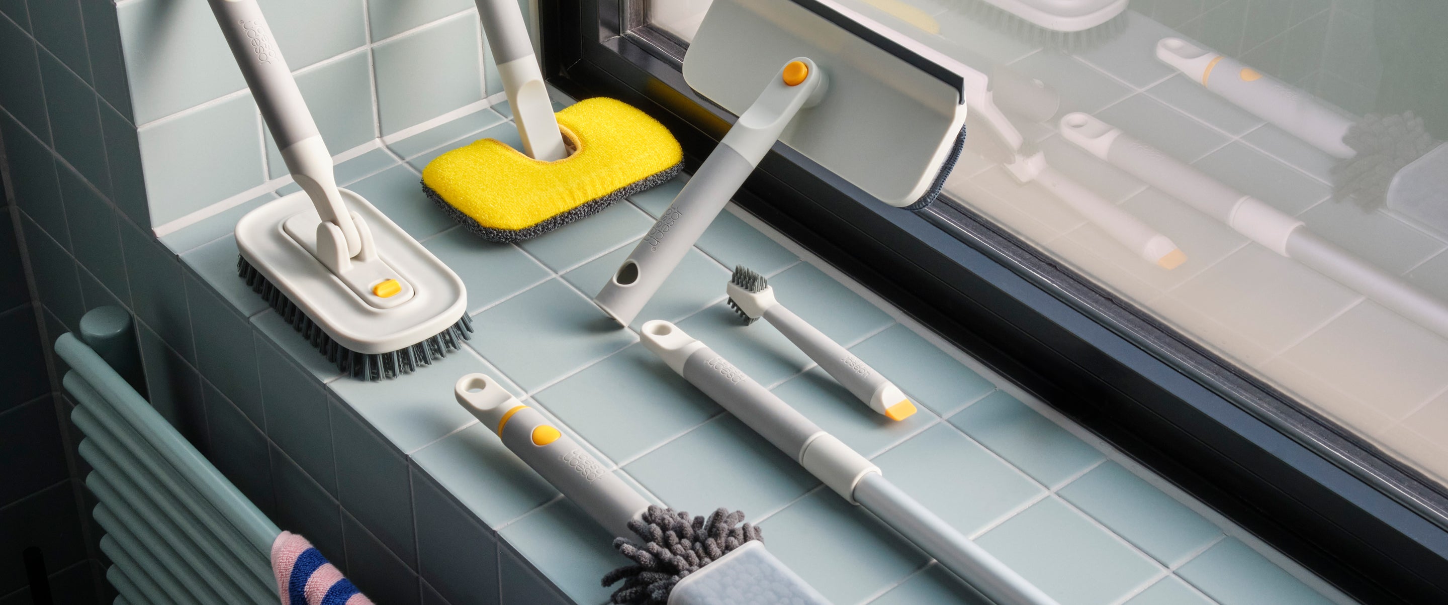 Les produits de nettoyage CleanTech™ de Joseph Joseph sont conçus pour que le rangement soit rapide, efficace et même agréable. L'outil de nettoyage des carreaux CleanTech™ avec sa brosse à joints intégrée vous permet de traiter plusieurs surfaces en une seule fois, tandis que le balais serpillière avec pulvérisateur CleanTech™ assure une distribution de l'humidité uniforme pour un nettoyage des sols sûr et efficace.