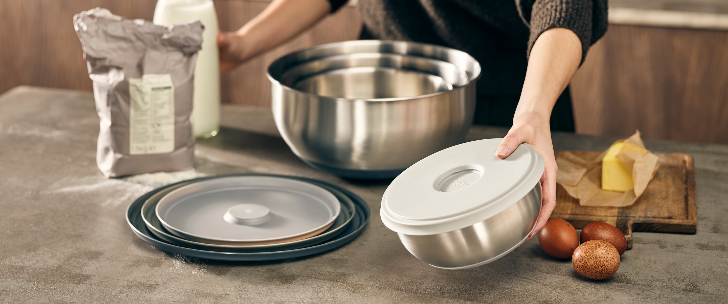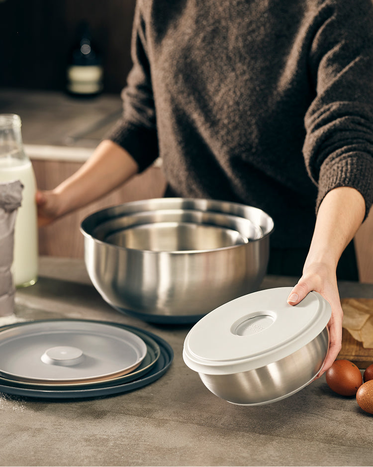 - L'ensemble de bols en acier inoxydable Nest™ Prep&Store est parfait pour préparer et portionner vos ingrédients. Ces bols empilables sont livrés avec des couvercles hermétiques pour conserver la fraîcheur, ce qui les rend idéaux pour stocker des légumes hachés, des marinades ou des épices pré-mesurées. Leur conception empilable permet d'économiser de l'espace et de garder votre cuisine et vos ingrédients prêts à l'emploi.