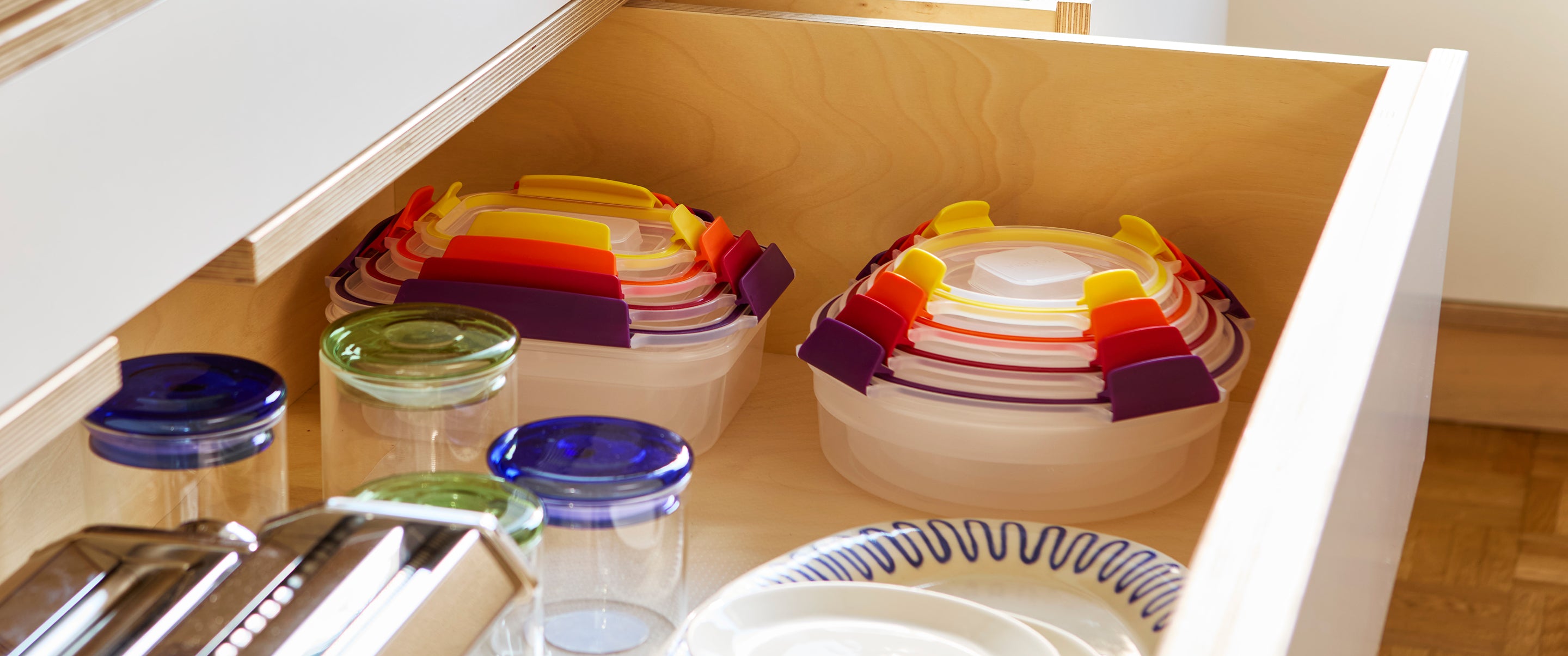 - Pour ceux qui aiment cuisiner en grande quantité, les contenants de rangement alimentaire Nest™ en verre sont une option durable et de haute qualité. Ces contenants sont résistants au four, au congélateur et au micro-ondes. Que vous prépariez des lasagnes, congeliez des soupes ou réchauffiez des restes, ils vous permettent de cuisiner, de stocker et de servir dans le même plat, ce qui vous fait gagner du temps et réduit la quantité de vaisselle à laver.