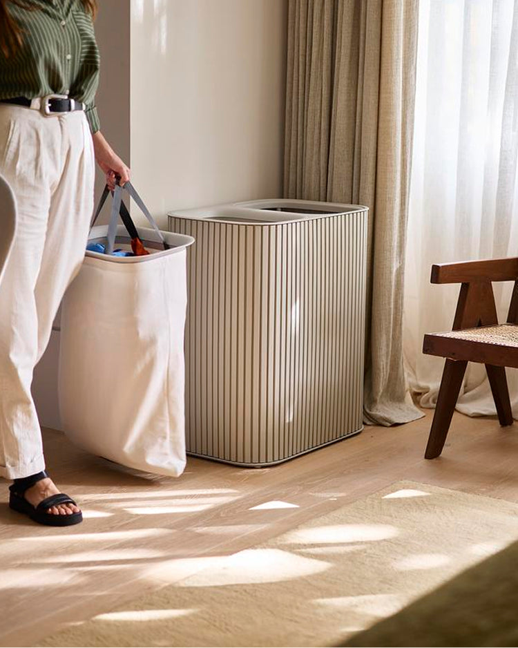 Si vous avez une famille ou vivez dans un foyer partagé où la lessive est une chose fréquente, vous aurez besoin d’un panier à linge plus grand. Ces modèles nécessitent un peu plus d’espace, mais ils peuvent contenir jusqu’à une semaine de linge (ou quelques jours pour une famille nombreuse). Le panier à linge Tota Trio Luxe 90L est doté de trois compartiments pratiques qui permettent de séparer le linge sombre, clair et délicat afin qu'il n'y ait plus de tri de dernière minute. Ou, avec tout autant d’espace réparti sur deux compartiments, le Tota Twin Luxe offre lui aussi 90 L de capacité. Idéal pour trier par couleur, par type de textile ou par utilisateur Les deux modèles sont dotés d'une finition en bambou de qualité supérieure qui s'intègre parfaitement à votre décoration intérieure.