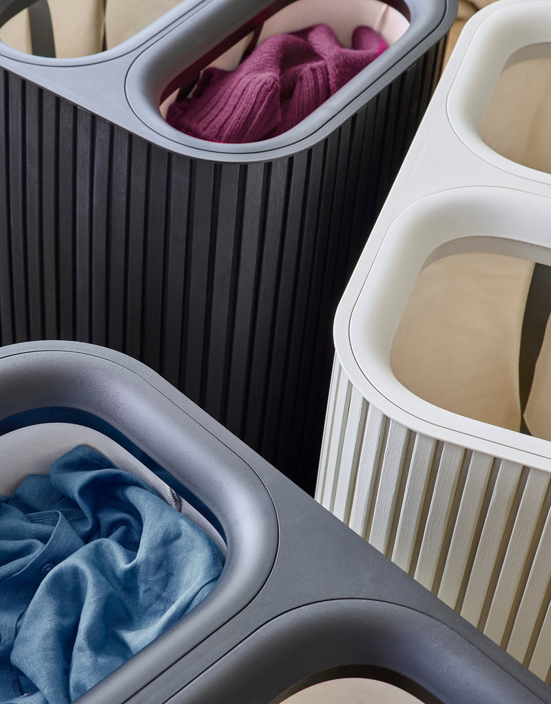 Nos paniers ne se contentent pas de contenir votre linge en attendant que vous fassiez la lessive. Ils vous aident à gérer la lessive comme un pro. Prenez le Tota Trio 90 L avec ses compartiments intégrés. Le linge est trié au fur et à mesure, de sorte que le jour J, il ne vous reste plus qu’à le mettre dans la machine, ajouter la lessive et choisir le programme. Nos modèles pliables sont transportables et faciles à ranger lorsqu’ils ne sont pas utilisés, parfaits lorsque l’espace est limité.