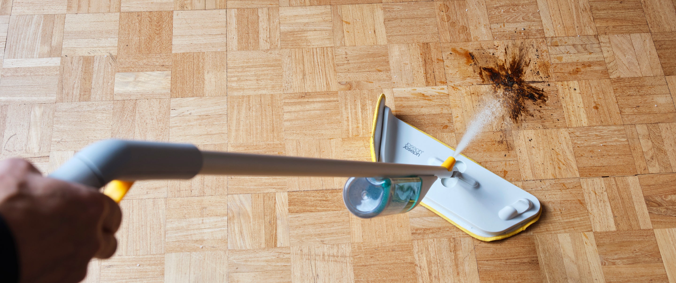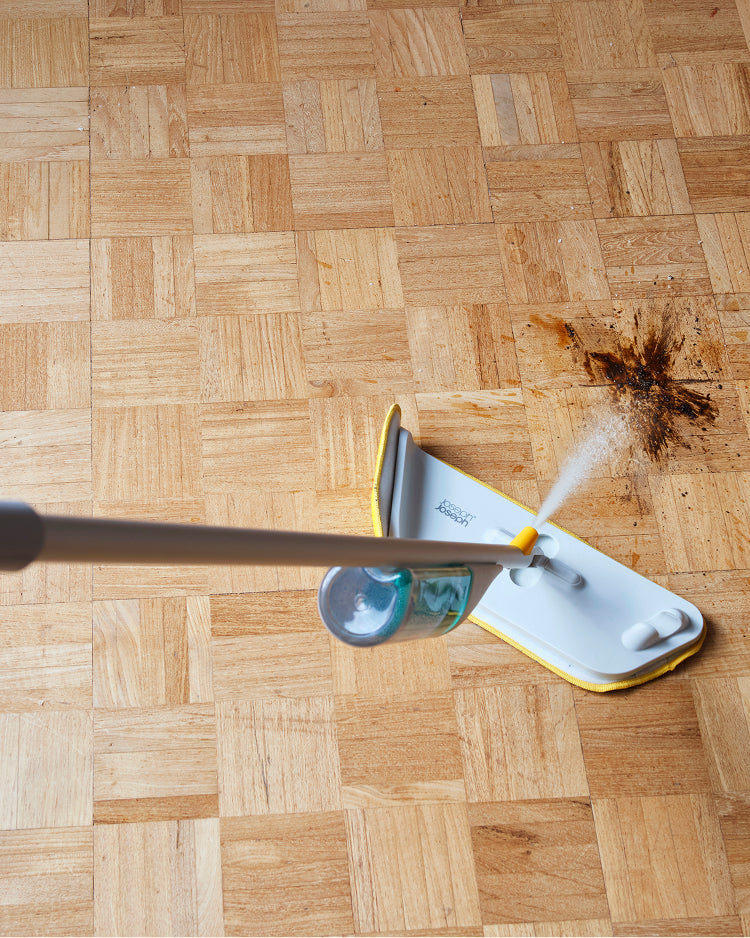 - Les balais serpillières avec pulvérisateur, comme le balai serpillière avec pulvérisateur CleanTech™ 2-en-1 Joseph Joseph, qui disposent de mécanismes intégrés pour appliquer facilement des détergents de nettoyage, sont idéaux pour essuyer les déversements et pour atteindre les zones sous les armoires et les tables auxquelles d’autres serpillières ont du mal à accéder.