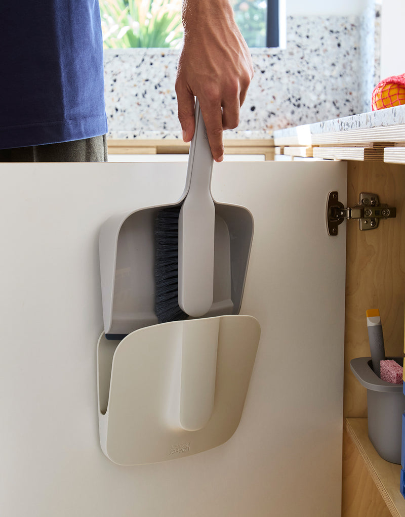 Les pelles et les brosses existent sous toutes les formes et tailles, mais il est souvent difficile de trouver une place pour elles. Notre ensemble de pelle et balayette à montage mural CleanTech™ est unique car il peut être rangé de manière hygiénique dans un support Dust-shield™. La pelle et la balayette robustes s’emboîtent également pour un rangement organisé, et la balayette possède un bord en caoutchouc pour un balayage plus efficace.