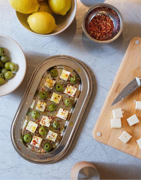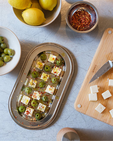 Le motif de damier est aussi esthétique qu'il est facile à réaliser, et le mélange de fromage salé, de fruits juteux ou d'olives salées est une combinaison de saveurs que vos invités adoreront. Garnis de zeste de citron, d'huile d'olive et d'une pincée d'épices, ils sont parfaits pour démarrer la soirée.