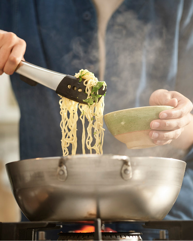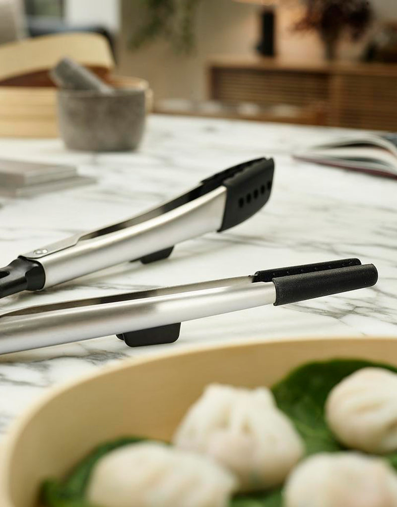 Une paire de pinces robuste est idéale pour retourner, remuer et servir les aliments délicats. Les pinces Elevate™ Fusion sont dotées d’extrémités en silicone pour éviter de rayer les ustensiles de cuisine, ainsi que d'un mécanisme de verrouillage astucieux pour un rangement compact.