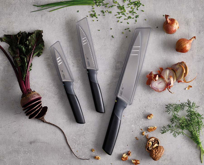 Découvrez notre gamme de couteaux et ciseaux de cuisine intelligents, dotés de fonctionnalités innovantes comme notre technologie Elevate™ qui améliore l'hygiène et réduit l'usure grâce à des lames japonaises en acier inoxydable. Explorez nos sets de couteaux avec planches à découper, ainsi que nos aiguiseurs et hachoirs.