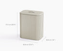 - Extérieur en bambou luxueux et couvercle recouvert de tissu avec poignée en cuir.