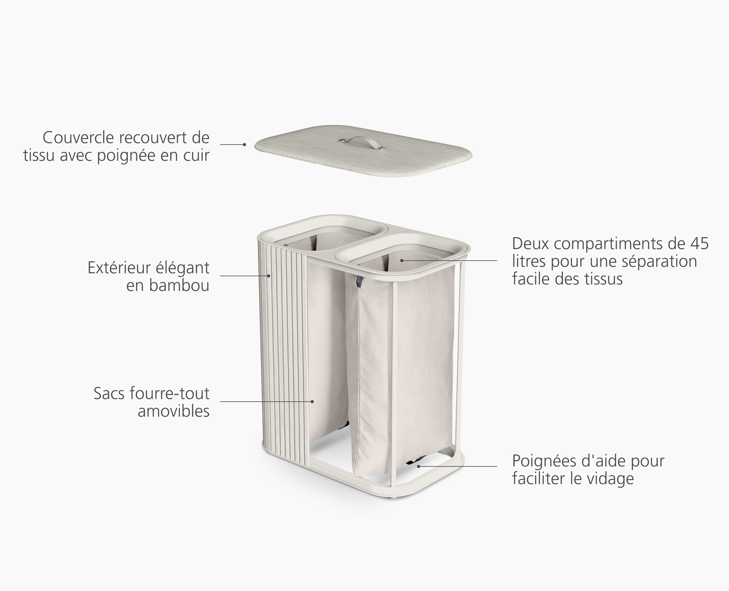 - Deux compartiments de 45 litres pour une séparation facile des tissus